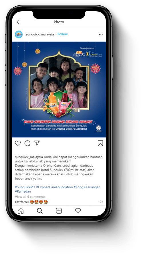 For every purchase, 5 cents was donated to Orphan Care Foundation, raising a grand total of RM127,000 through a successful digital campaign.